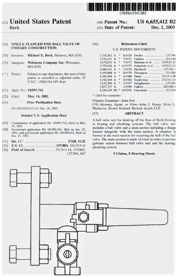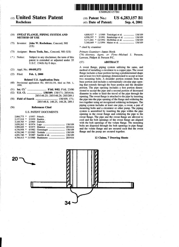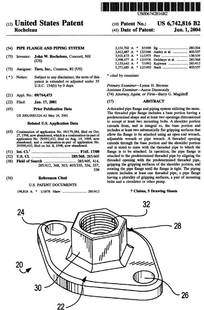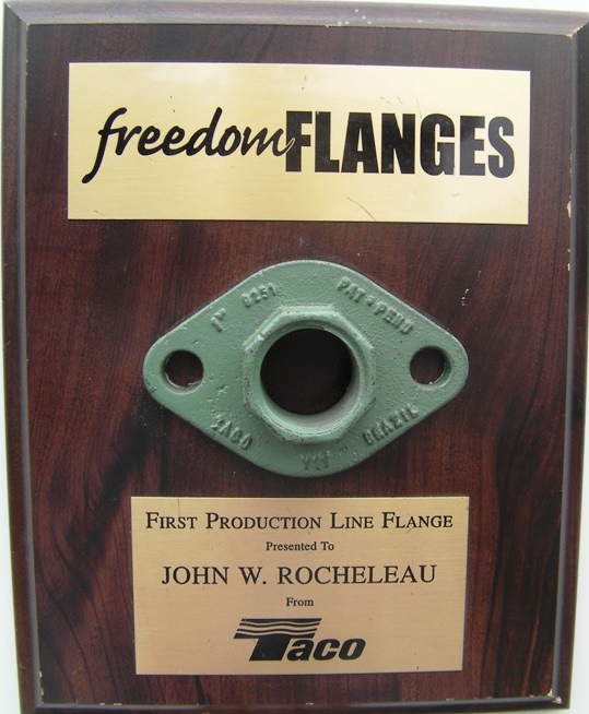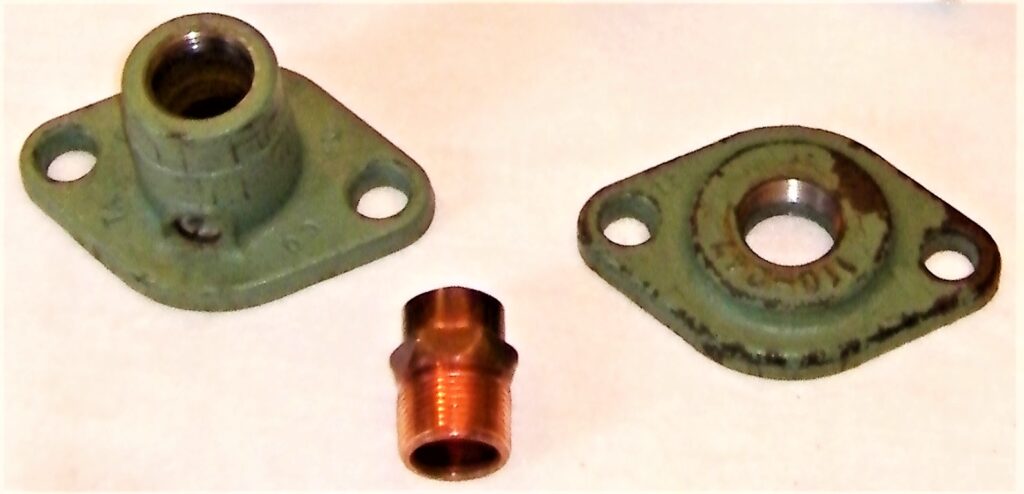 My new threaded and solder-connection flange designs for forced hot water heating circulators. Circa 1997.