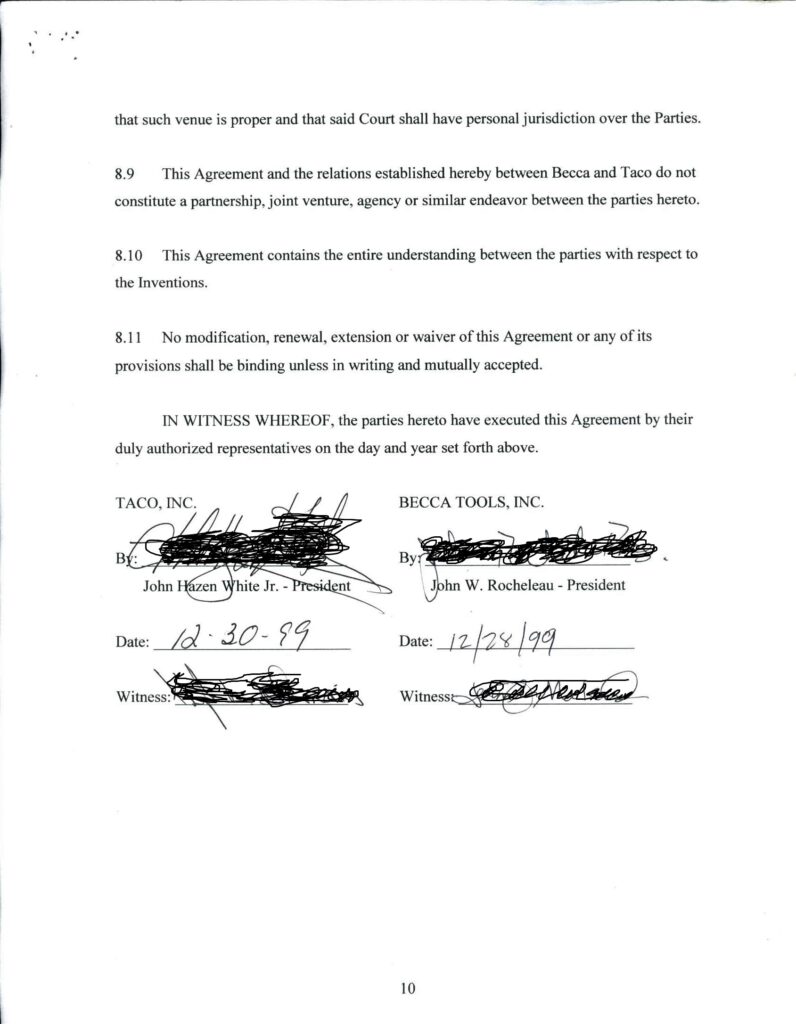 My second License Agreement with Taco, Inc., on December 28, 1999.